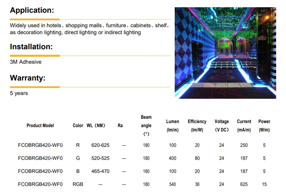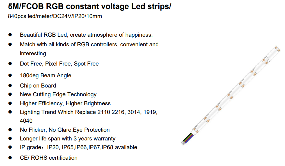 Brief introduction:RGB FCOB constant voltage Led strips