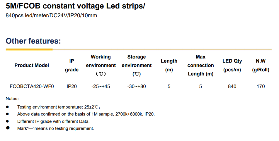 Brief introduction:CTA FCOB Flexible LED Strip Light 2700-6500K